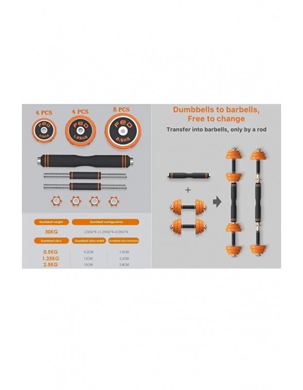 30 Kg Döküm Plaka Dambıl Seti 2 İn 1 Dambıl Seti
